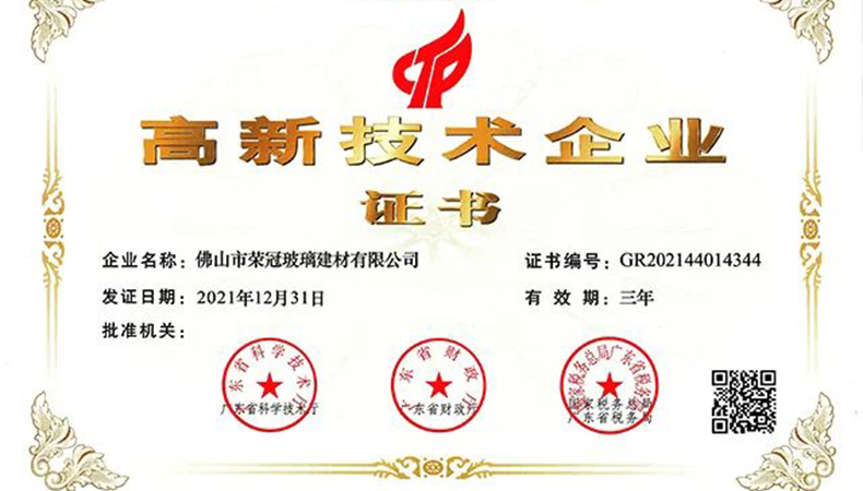 近日,佛山市榮冠玻璃建材有限公司收到由廣東省科學技術廳、廣東...