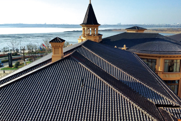 “榮冠”牌西班牙瓦具備隔熱好、耐久性、色彩鮮艷等諸多功能和特色,造型起伏多變,富有古典的歐式風味,鋪蓋后自然高雅,格調獨特,其從普通的瓦類的遮風擋雨的功能轉變為主要以裝飾功能為主,裝飾效果古樸自然、經典懷舊、風韻雅致。它是各種中高檔酒店別墅、樓宇亭臺、大型商業中心、市政工程等建筑的首選屋面裝飾材料。