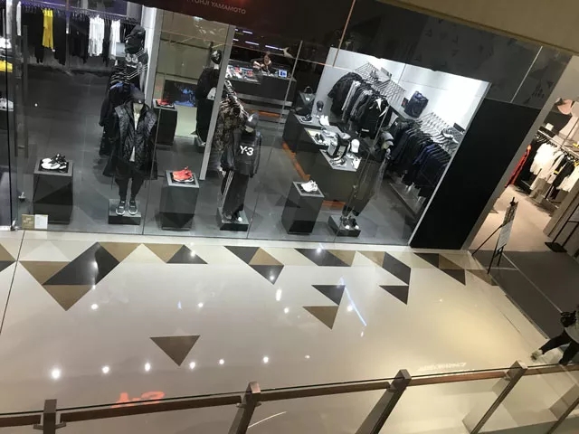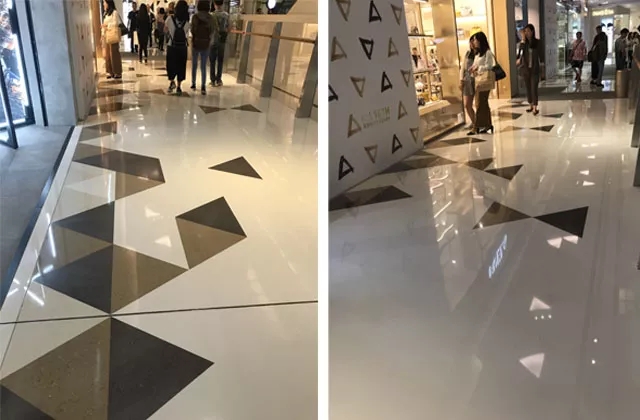 別出心裁的地面裝飾,讓顧客賞心悅目,打造出一個(gè)藝術(shù)與商業(yè)完美融合的購(gòu)物商城。