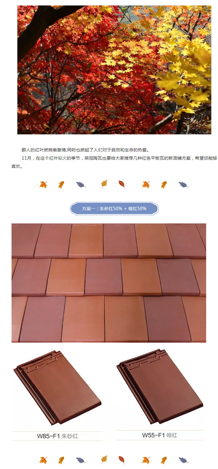 紅葉似火,榮冠平板瓦新混鋪搭配方案推薦給您