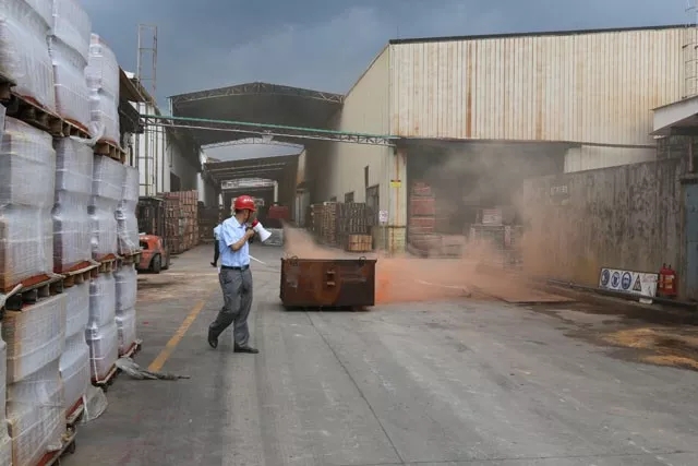 本次消防演練按照預定的方案,有序、緊張地進行。主要是應對柴油泄露、柴油火災或爆炸、叉車意外傷人等突發情況進行模擬教學演練。