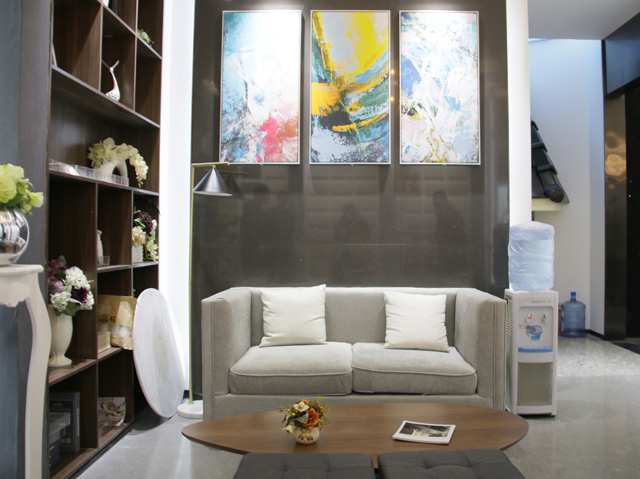 榮冠展廳占地160多平方米,分為榮冠崗石●石英石與榮冠陶瓦兩個體驗模塊。無論是店面門頭、形象臺、大廳、樣板間展示區都經過合理的規劃,讓進入展廳的客戶置身于榮冠的極致空間藝術世界,沉浸于榮冠簡約大氣、時尚典雅的氣質中。同時兼顧滿足各層次客戶的個性化裝修需求,展廳設有選材體驗館,陳列出各個系列的產品樣板,大家可進店挑選板材。