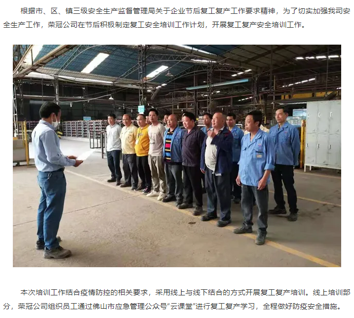 安全管理,重在教育,貴在持續,本次復工培訓有效地幫助全體員工及時調整工作狀態,掌握了安全管理重點,為2021年完成生產任務打下了堅實的基礎。