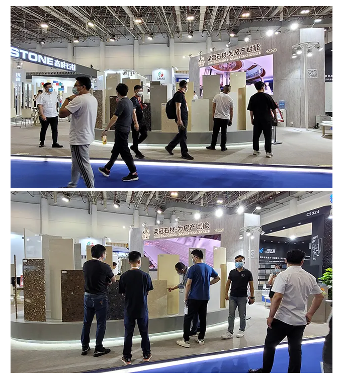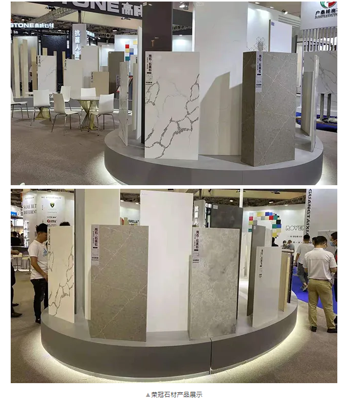 眾多觀展者對品種多樣、花色豐富多彩的榮冠崗石和石英石產品感到驚艷,并給予了一致的好評。