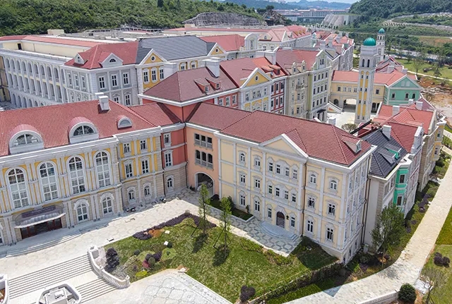 走進貴州華為全球云數據中心,一棟棟歐式建筑映入眼簾,靚麗多彩的榮冠陶瓦層疊連片,讓你仿佛置身于“歐洲小鎮”,蓄滿水的人工湖映照城中美景和蔚藍天空,宛如童話世界一般。