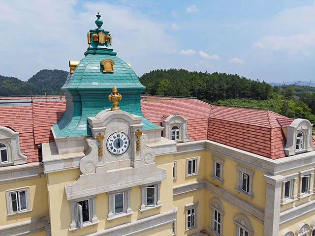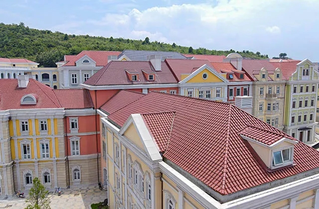 如此美麗的建筑群,在屋面裝飾上怎么能缺少業內知名的榮冠陶瓦為其增添色彩。