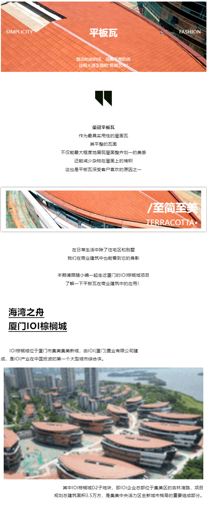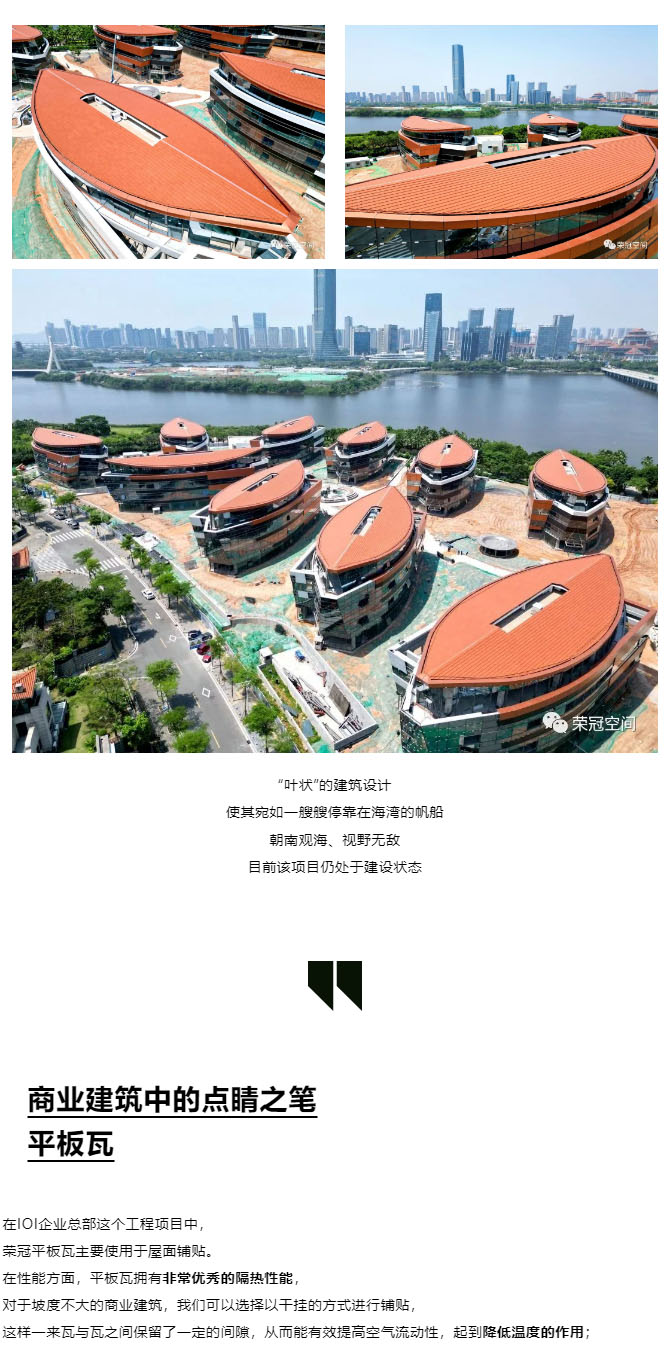 榮冠平板瓦,作為最具實用性的屋面瓦,其平整的瓦面,不僅能最大程度地展現(xiàn)屋面整齊劃一的美感,還能減少雜物在屋面上的堆積,這也是平板瓦深受客戶喜歡的原因之一