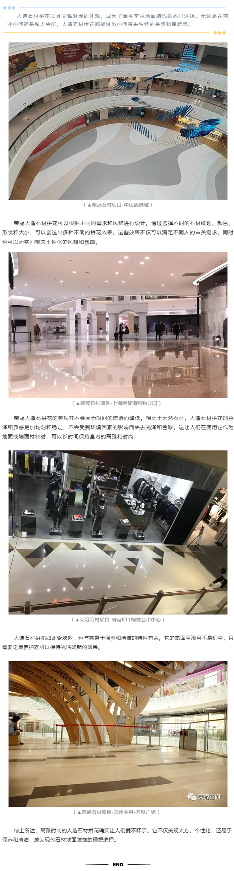 人造石材拼花以其高雅時尚的外觀,成為了當今室內地面裝飾的熱門選擇。無論是在商業空間還是私人會所,人造石材拼花都能夠為空間帶來獨特的美感和品質感。
