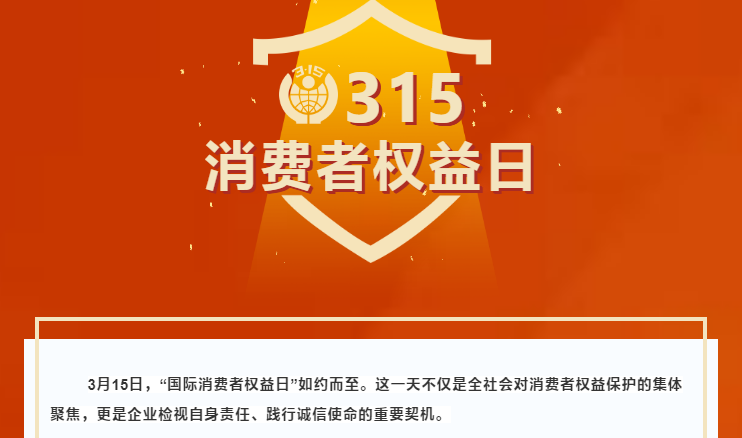3月15日,“國際消費者權益日”如約而至。這一天不僅是全社會對消費者權益保護的集體聚焦,更是企業檢視自身責任、踐行誠信使命的重要契機。