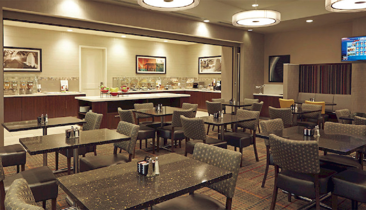 舒適度作為洛杉磯機場萬豪酒店的首要標準,一切設施都以此為目標。其中選用了榮冠石英石QS301用于臺面板。榮冠石英石表面如晶如點的花式細密清晰,玉石般晶瑩剔透,觸感溫潤細滑,造就了酒店的簇新面貌,不論是餐廳、洗衛室都增添一份時尚雅致的氣息,讓旅客瞬間忘記旅途的疲倦。
