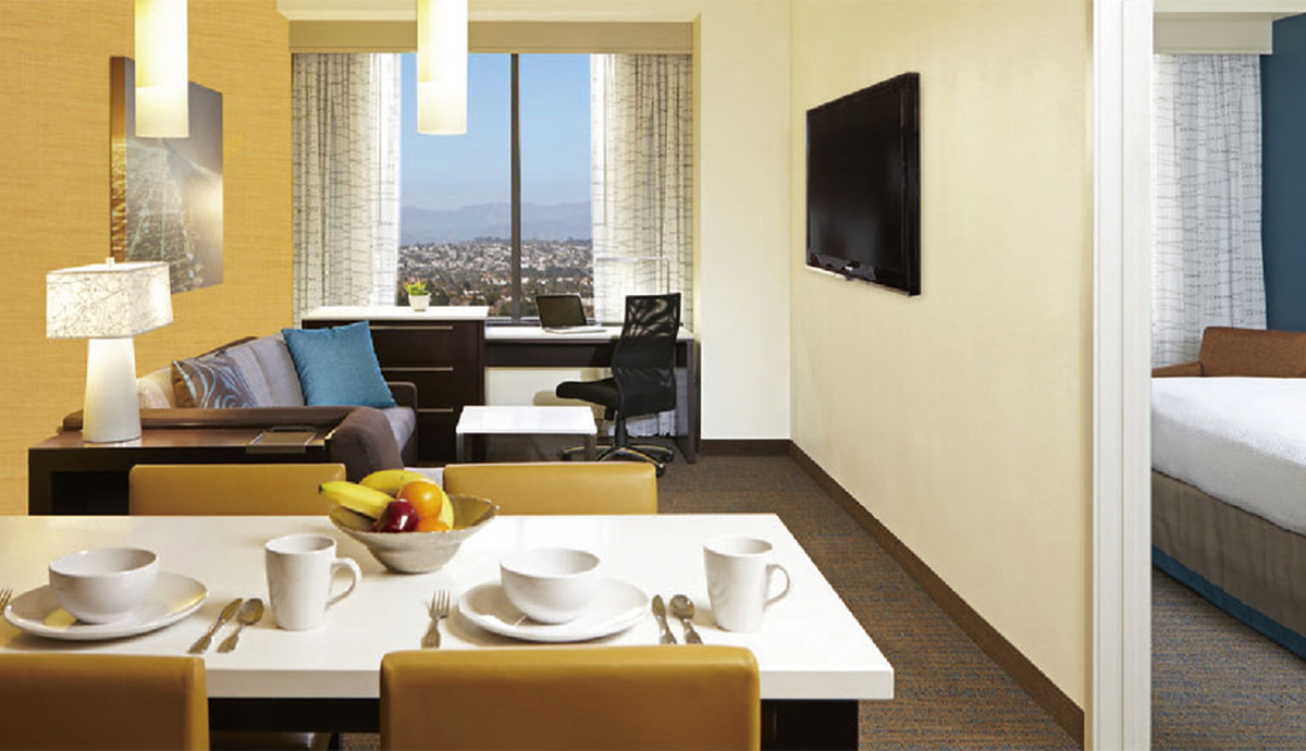 機場附近的萬豪大酒店是洛杉磯縣最大的一個酒店之一,擁有18層樓1004個房間,于1972年建成,并在2015年,進行了3500萬美元的改造,于2015年11月竣工。